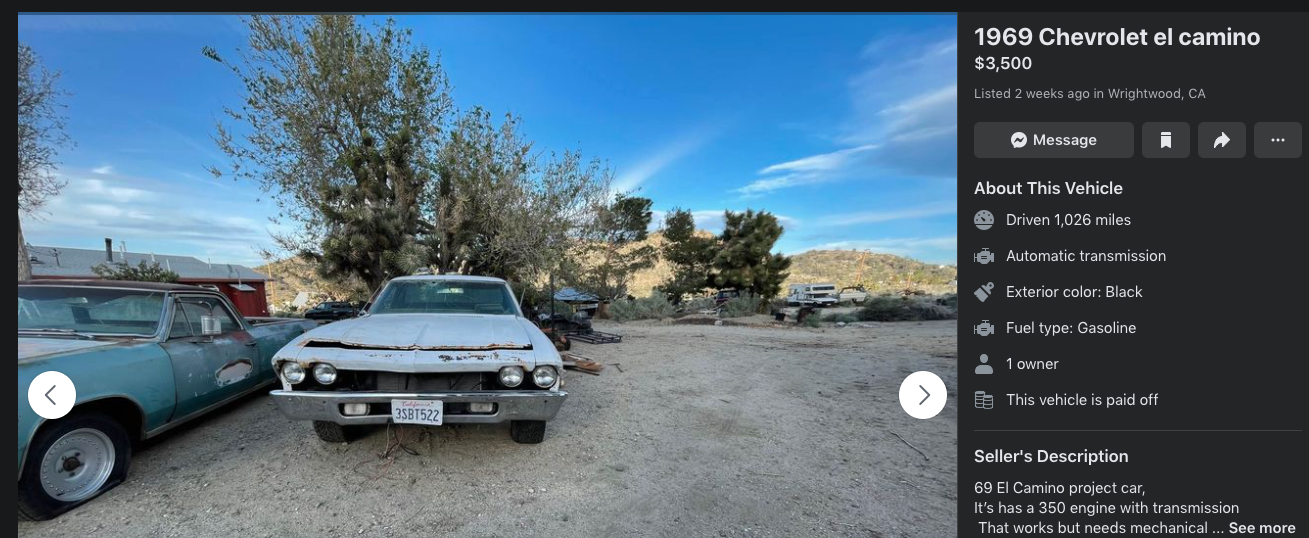 I've been looking at listings on Craigslist and Facebook Marketplace and I come up with these two: